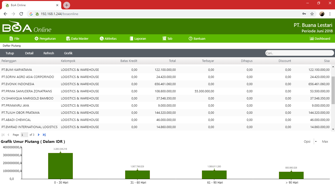 Menu aktivitas transaksi piutang digunakan untuk melihat informasi dan menginput seluruh transaksi yang berhubungan dengan piutang usaha pelanggan. Anda dapat melihat daftar piutang pelanggan dan menginput pembayaran piutang pelanggan melalui menu-menu ini.