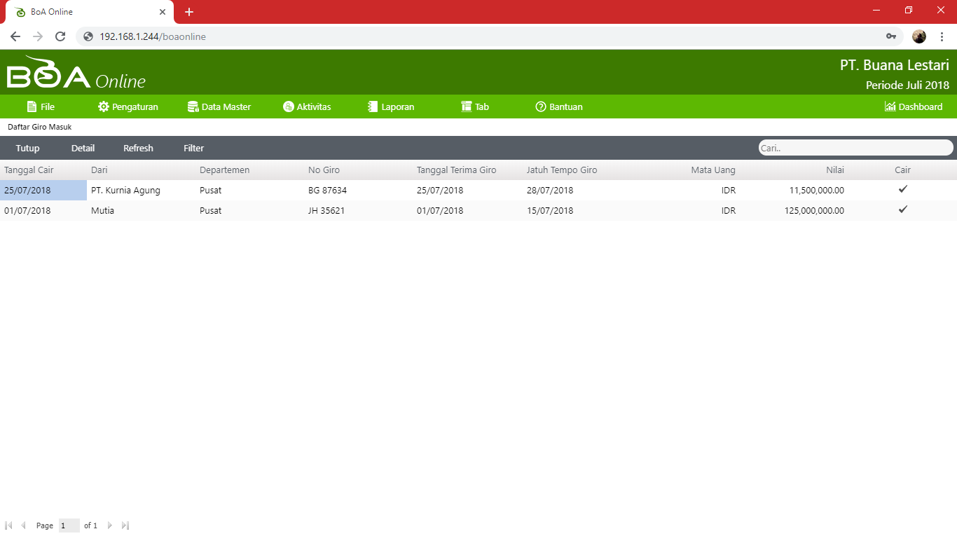 Klik menu Aktivitas > Piutang > Daftar Giro Masuk