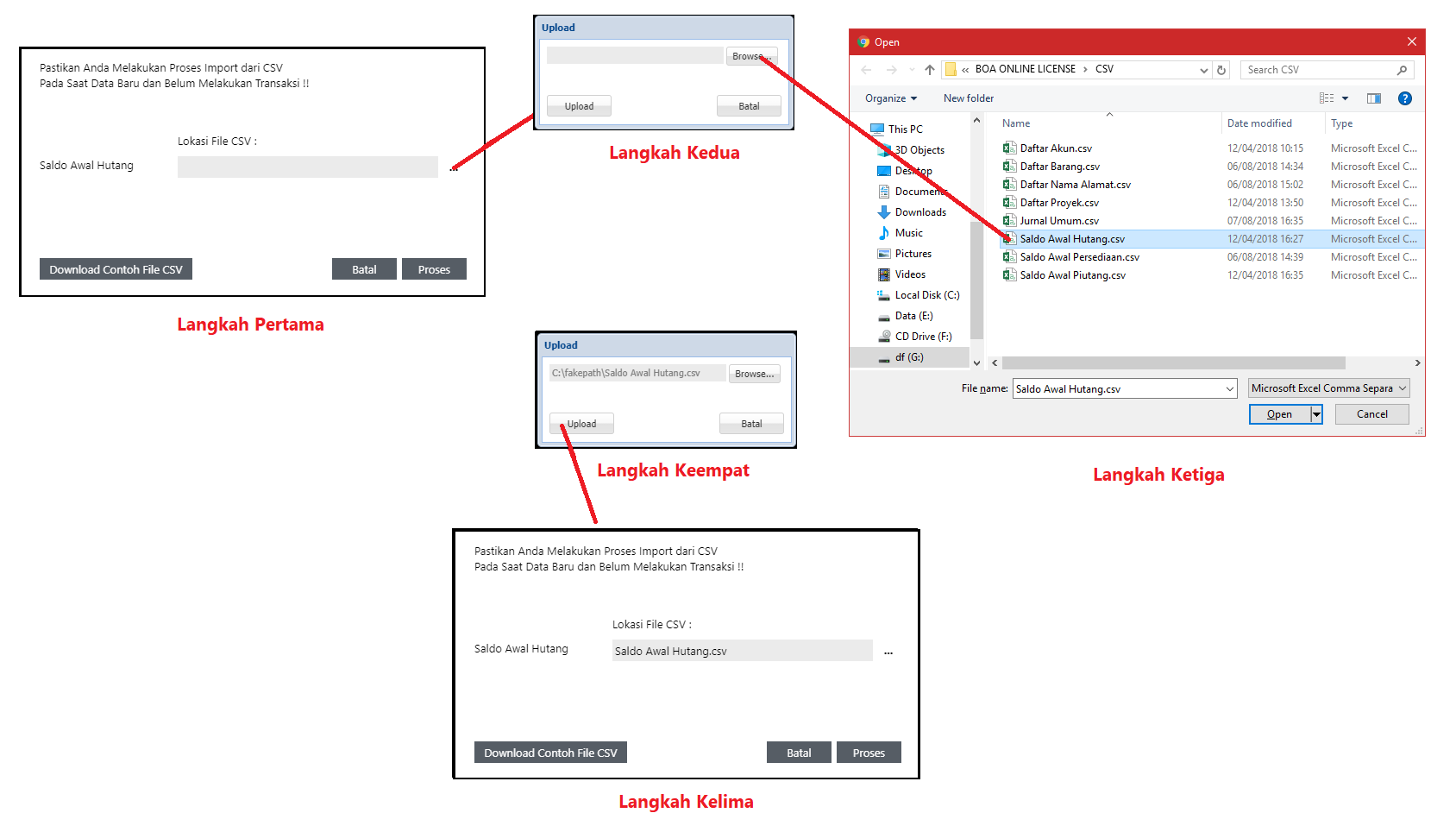 - File Saldo Awal Hutang.csv harus disimpan dengan format *.csv bukan *.xls