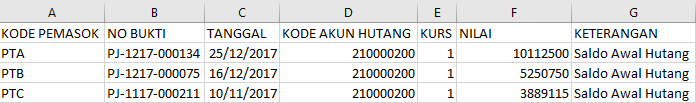- Double klik file Saldo Awal Hutang.csv (Langkah Ketiga)