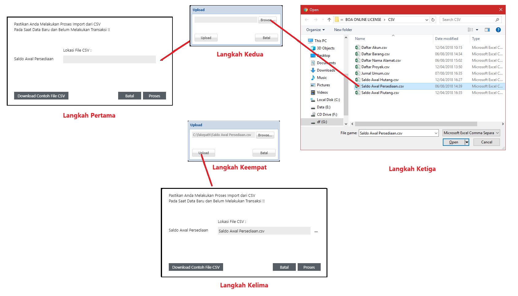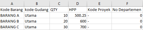 - File Saldo Awal Persediaan.csv harus disimpan dengan format *.csv bukan *.xls