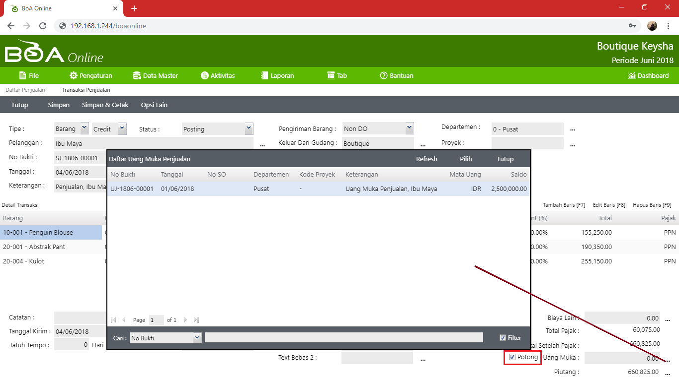 (Baca: Cara Input Uang Muka Penjualan)