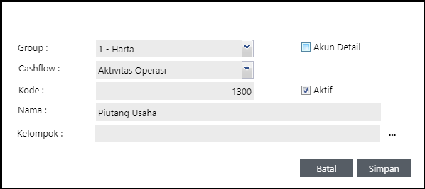 Agar laporan Arus Kas dapat terbentuk, tentukan type Cashflow disetiap pembuatan Sub Group Akun di data master akun ( Baca : Cara Membuat Sub Group Akun )