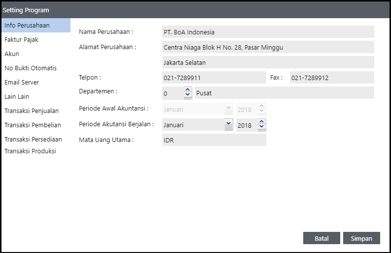 Ini adalah jendela Setting Program > Informasi Perusahaan